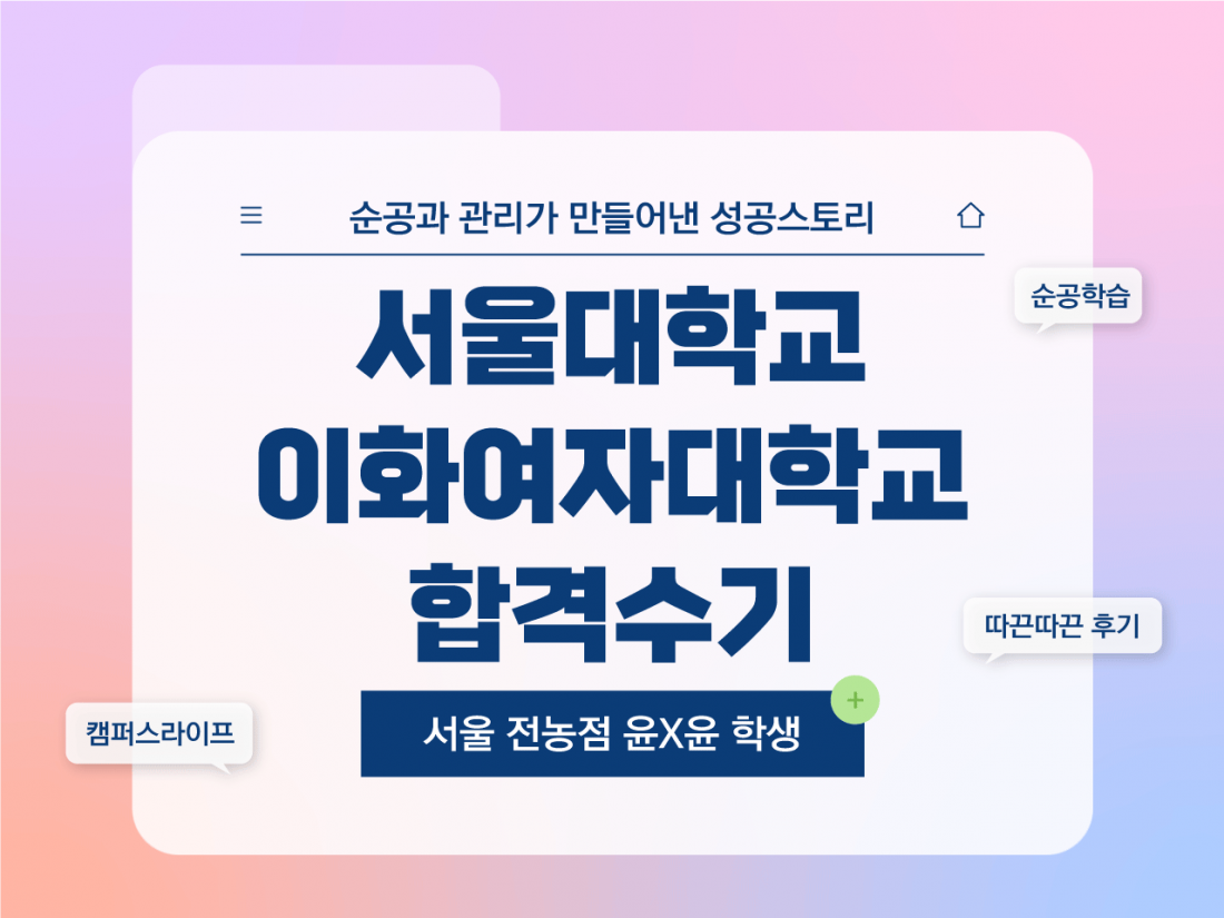 2024년 서울대, 이화여대 합격 전농점 윤X윤학생