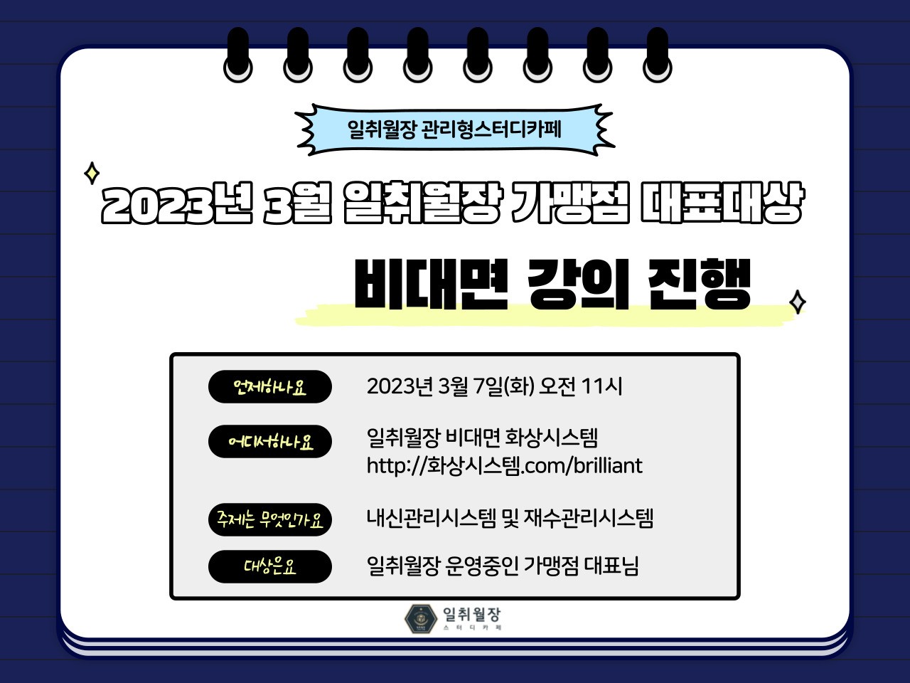 2023년 3월 일취월장 가맹점 대표 대상 비대면 강의 진행