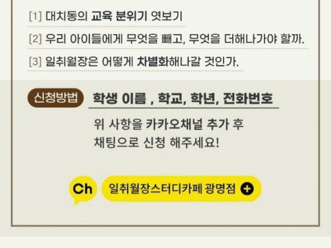 2023년 일취월장 광명점 오픈 학부모 설명회 신청 안내
